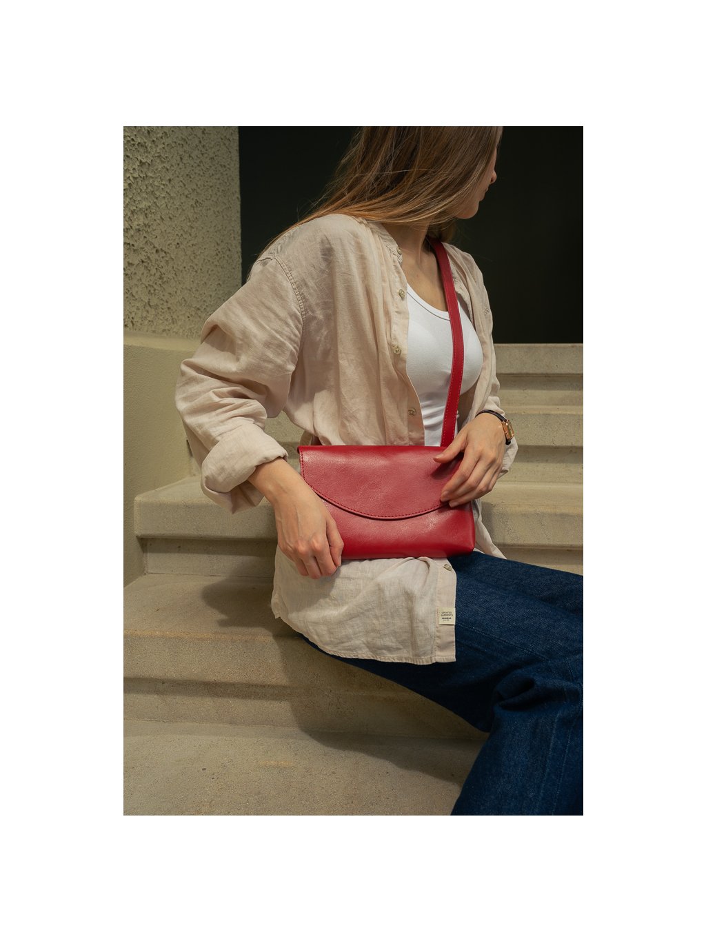 Malá kapsička, zapínání na magnet. Popruh s volitelnou délkou. Stříbrná spona.
