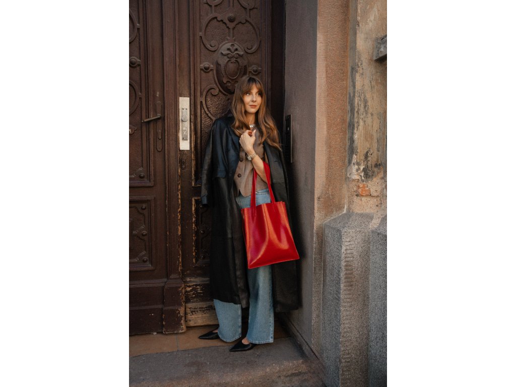Nákupní taška. Uvnitř jeden velký prostor. Rozměr 31x35x6 cm